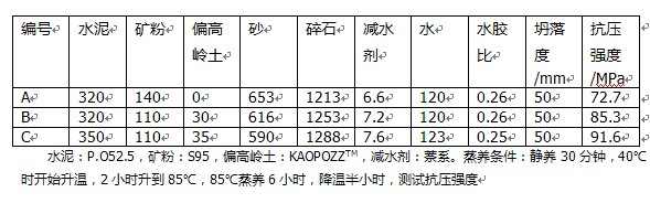 (注:文章中偏高岭土质量一般,用KAOPOZZTM将有更好的性能表现)